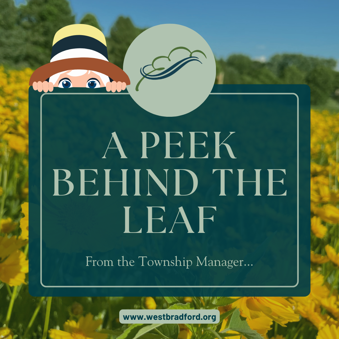 Lastly, please join us in welcoming our new public works employee, Scott Van Cleave. Scott is no stranger to West Bradford having worked here as a summer employee and is actively involved with the local Scouts. Scott has previously worked for the Downingtown Area Recreation Consortium (DARC). — Justin Yaich, Township Manager